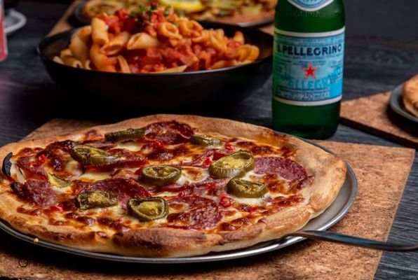 Pepperoni, sun dried tomatoes, spanish onions, jalapenos and mozarralla cheese