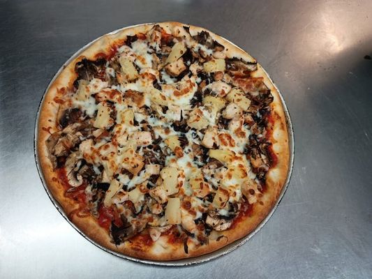Mozzarella cheese, chicken, mushroom, pineapple