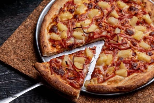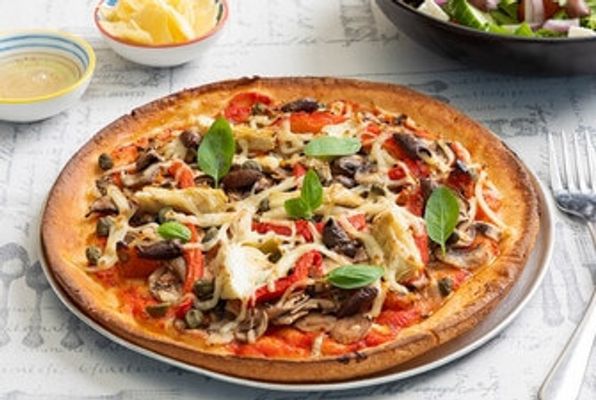 Mozzarella cheese, olives, onion, pineapple, capsicum and mushrooms