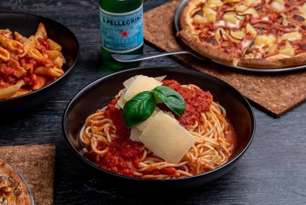 Two spinach and ricotta-filled cannelloni with your choice of sauces: Napoli (tomato, basil and onion) Bolognese (mince, tomato, basil, onion and garlic) Delicate, rich and beautifully balanced. Pick your sauce and dig in.